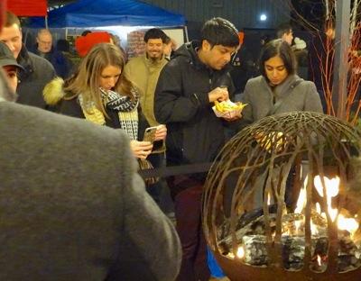 The Pavilion is tucked just inside the NY Botanical Gardens southern gate. Local food vendors were tucked in along the walls and a railing in a U shape, with a fire burning in the middle of it. The food vendors are generally participants of the Bronx Night Market, and thus may change from week to week. The Bronx Night Market which is a seasonal pop up market in the Fordham neighborhood.